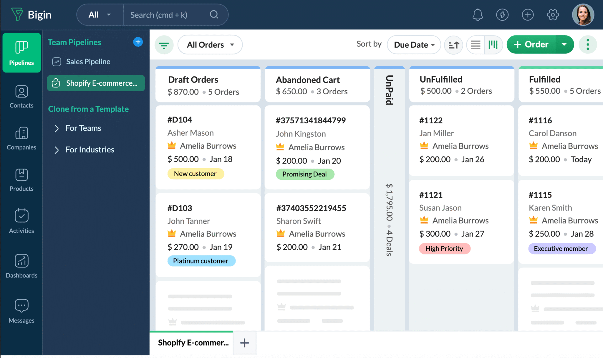 As an official Zoho Bigin Implementation Partner, you gain the advantage of having every piece of customer information centralized within your Bigin account. From contact details and deal history to communication logs and follow-up activities, everything is neatly organized and instantly accessible.